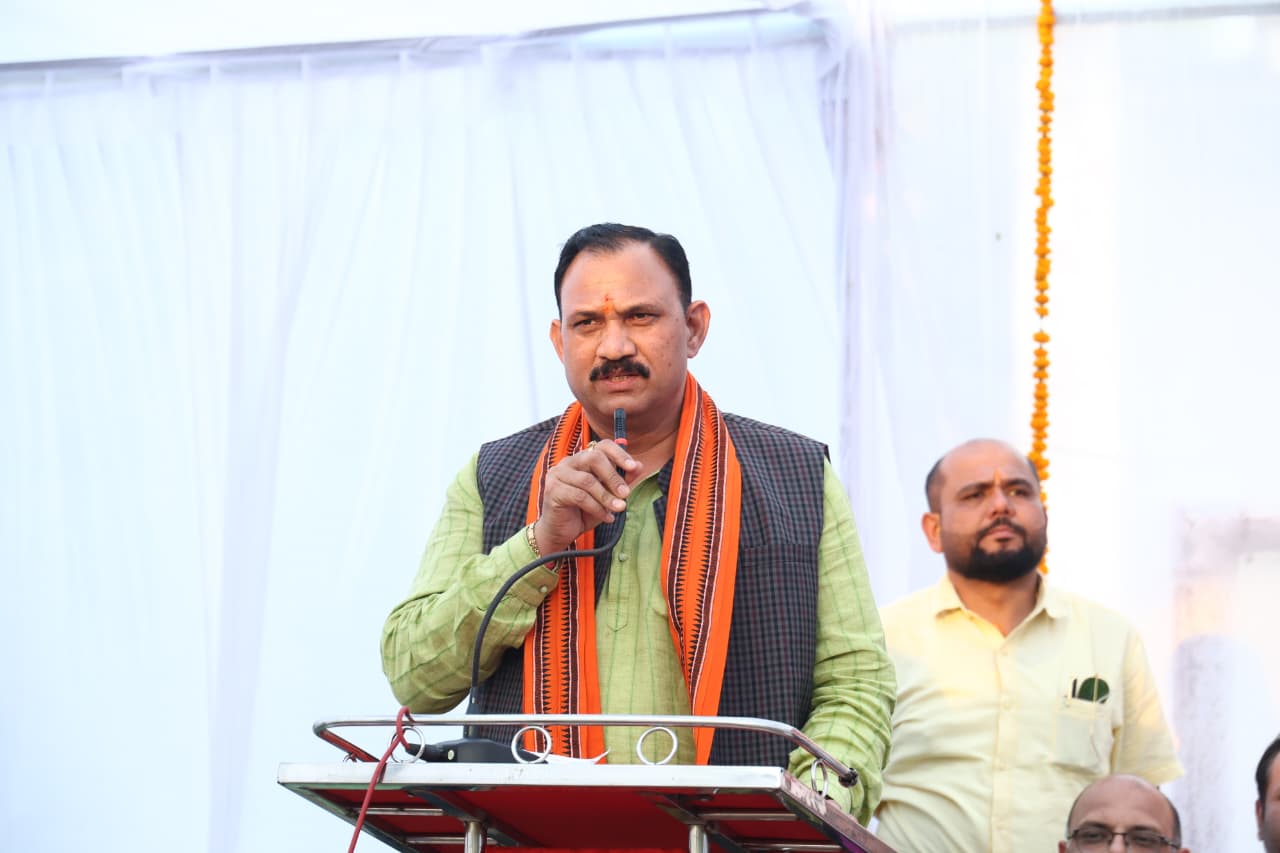 भूमिपूजन के दौरान जनता को संबोधित करते हुए स्वास्थ्य मंत्री श्यामबिहारी जायसवाल ने कहा: